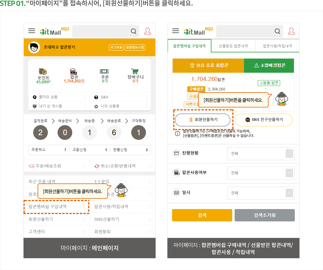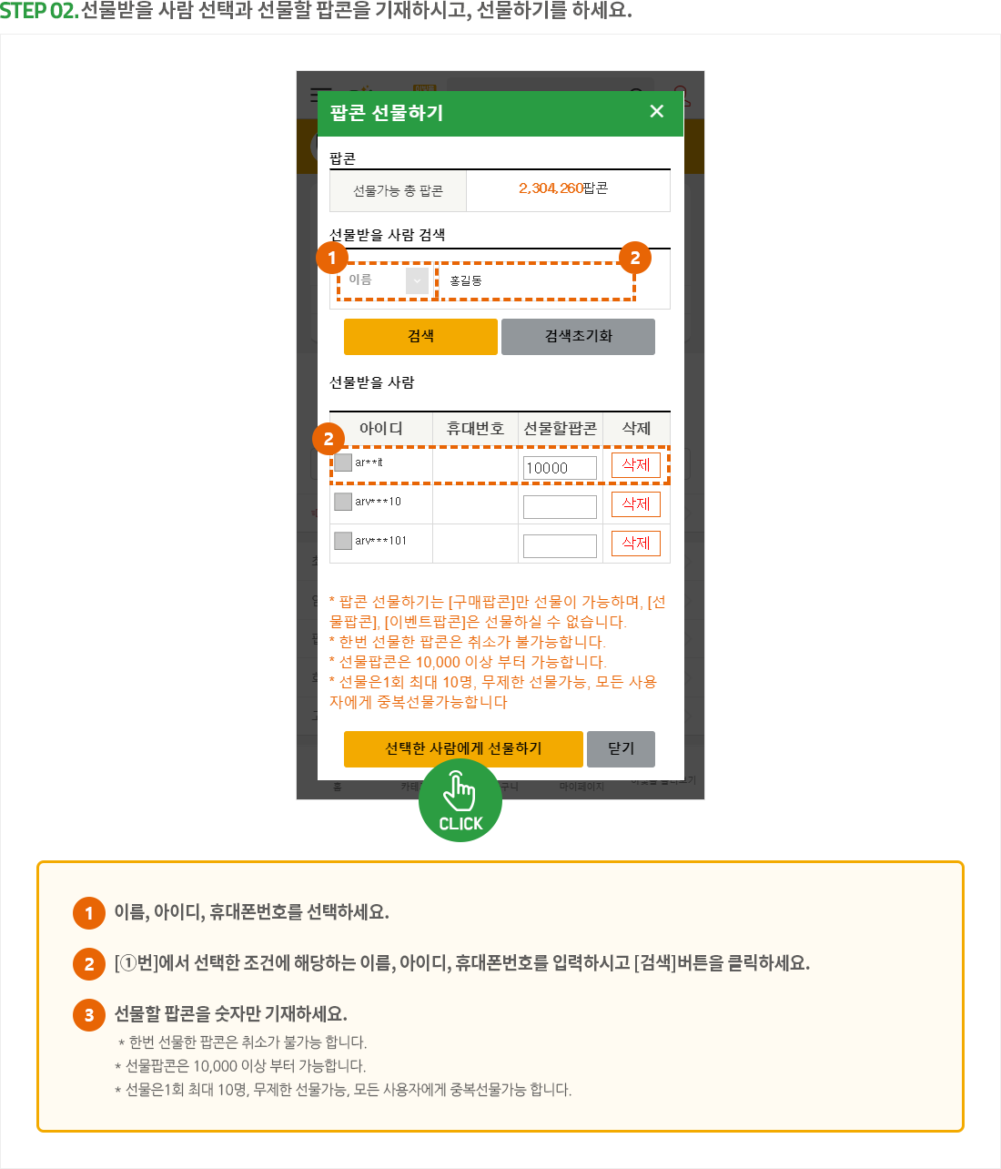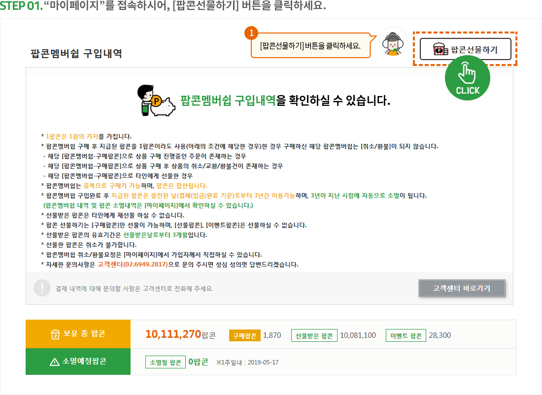 팝콘 선물하기 이용방법