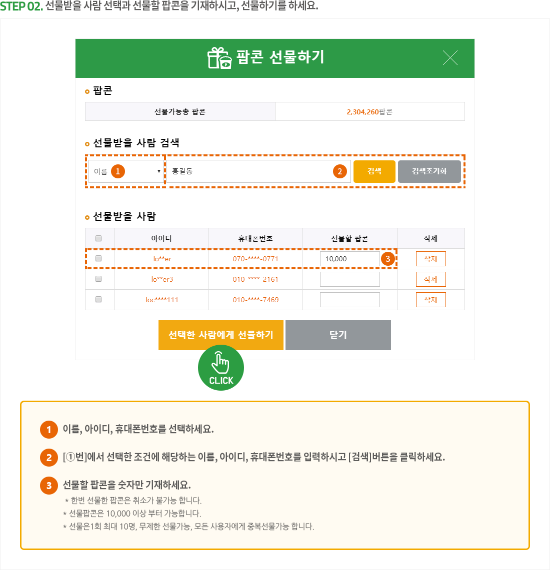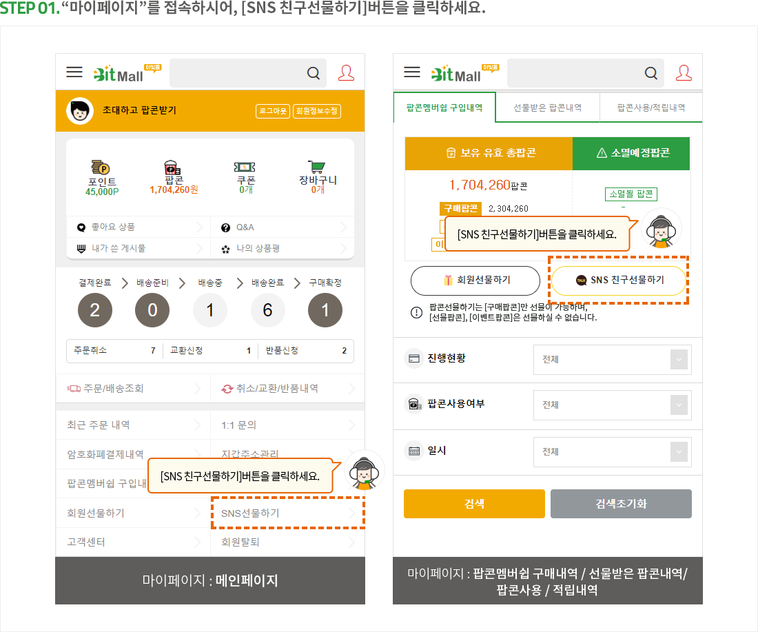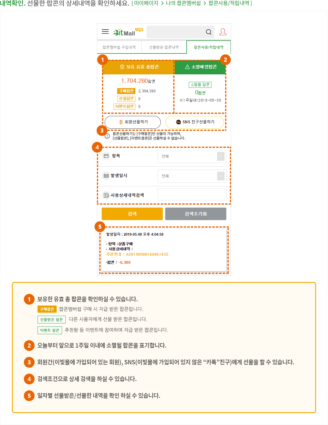 팝콘 선물하기 이용방법